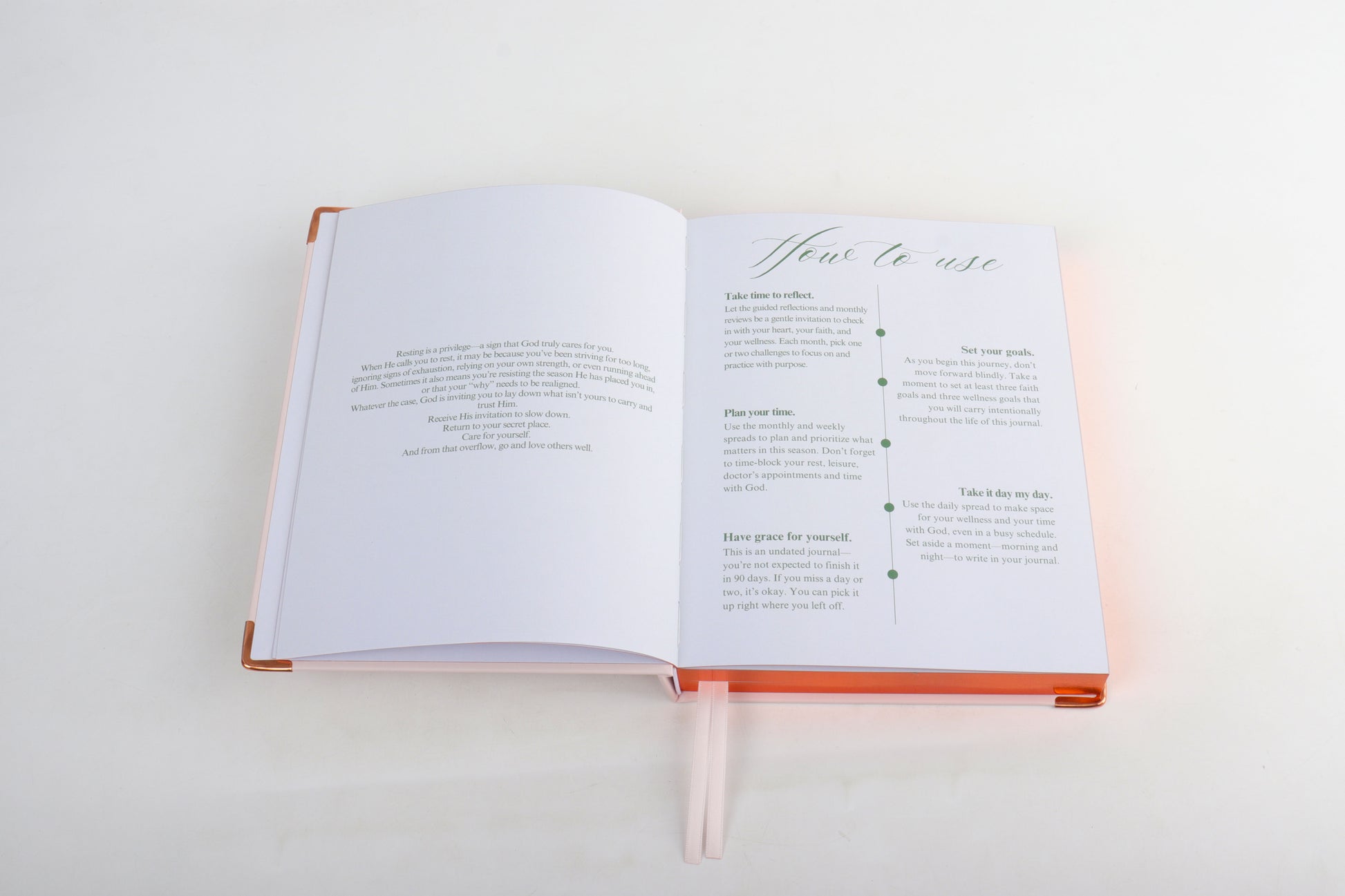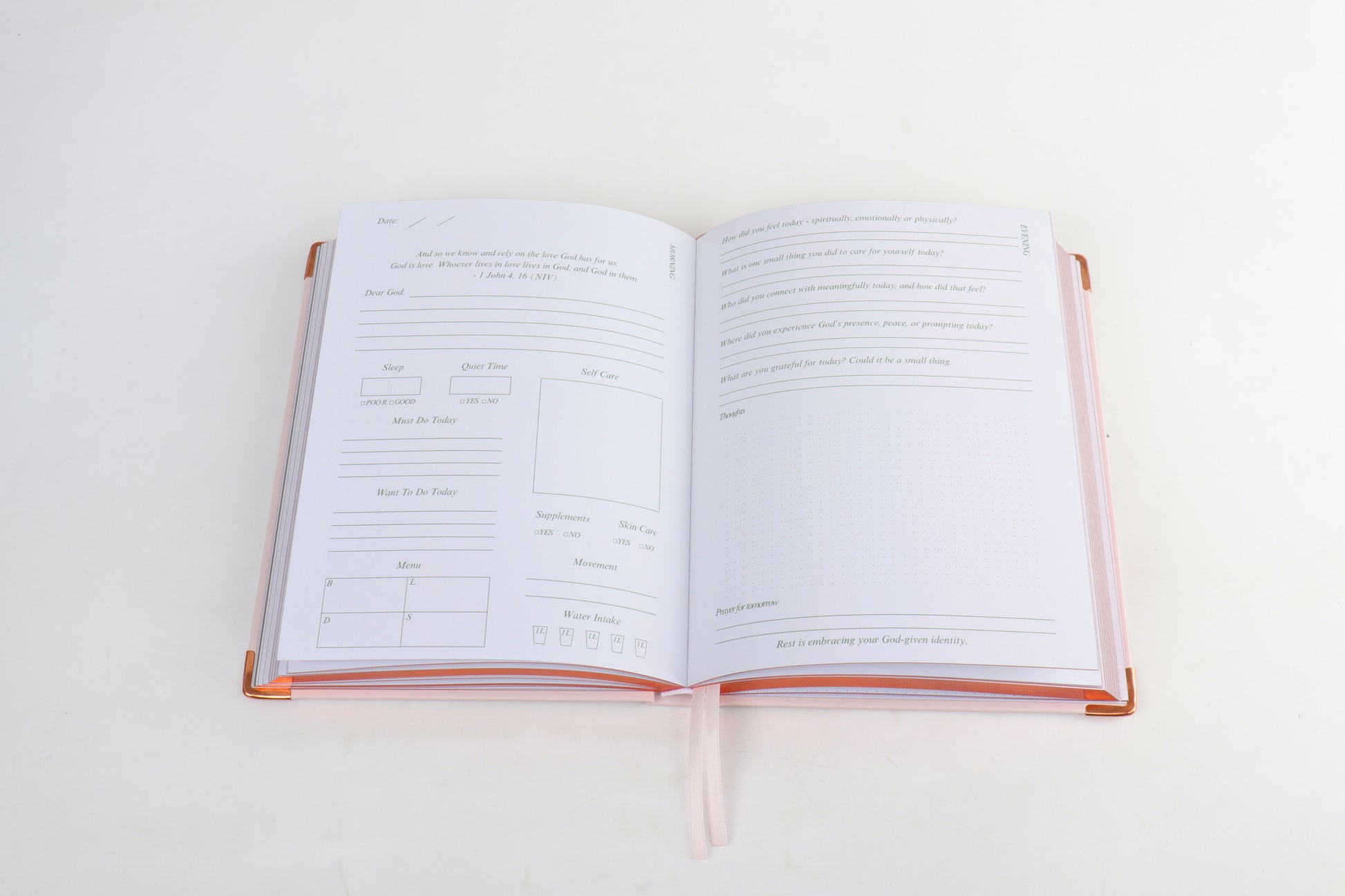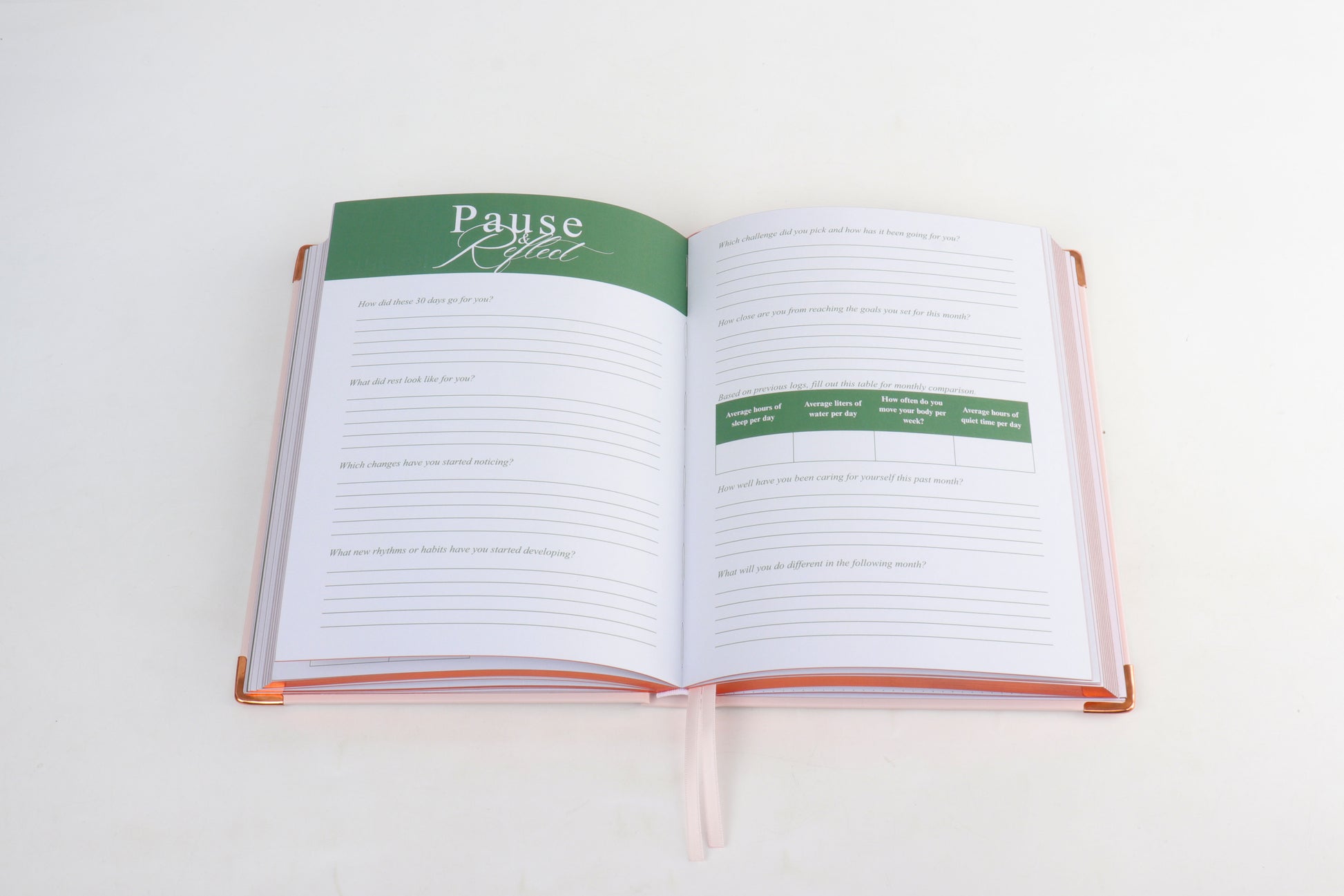 Embrace intentional living with our Faith & Wellness Journal—a tool that aims to help you carve some time in your busy schedule to breath and catch up with yourself and God. This beautifully designed journal blends faith, rhythms of rest, and practical wellness tools to help you establish a balanced and purpose-filled life.